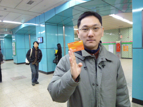 在飯店拿了地圖,總共五個人就坐上地鐵出發!馬上就遇到第一個難題,買地鐵的票時看不懂韓國字,還好有中文跟英文,韓國地鐵一次型的票有含押金,出站後還好同事有看到可以退押金的機器,所以提醒要去的人,如果買一次票要記得退押金喔!