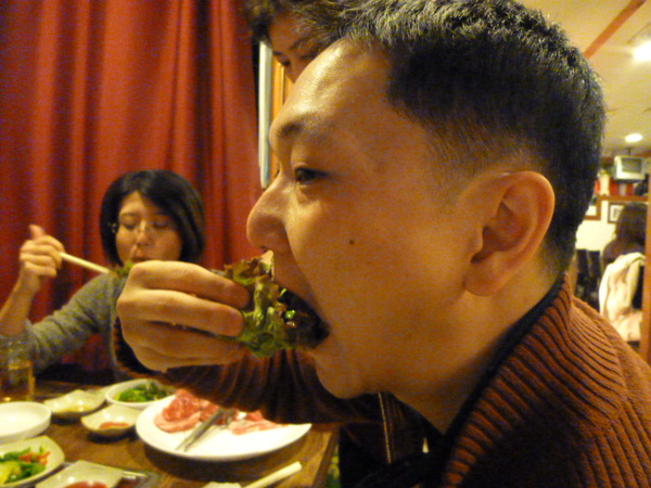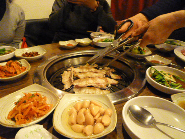 在韓國吃烤肉最棒的就是桌上附一堆小菜,還有人幫你烤好,只要坐著吃就行了!