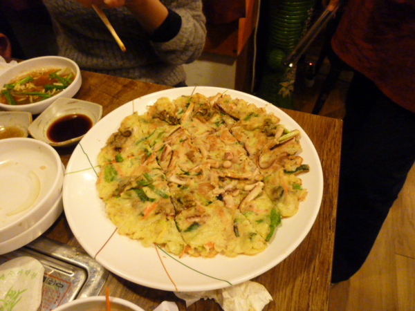 沒想到又端來海鮮煎餅,這個我確定沒點,阿珠嬷竟然說是撒必司,原來剛剛那鍋也是撒必司,我們超開心的~